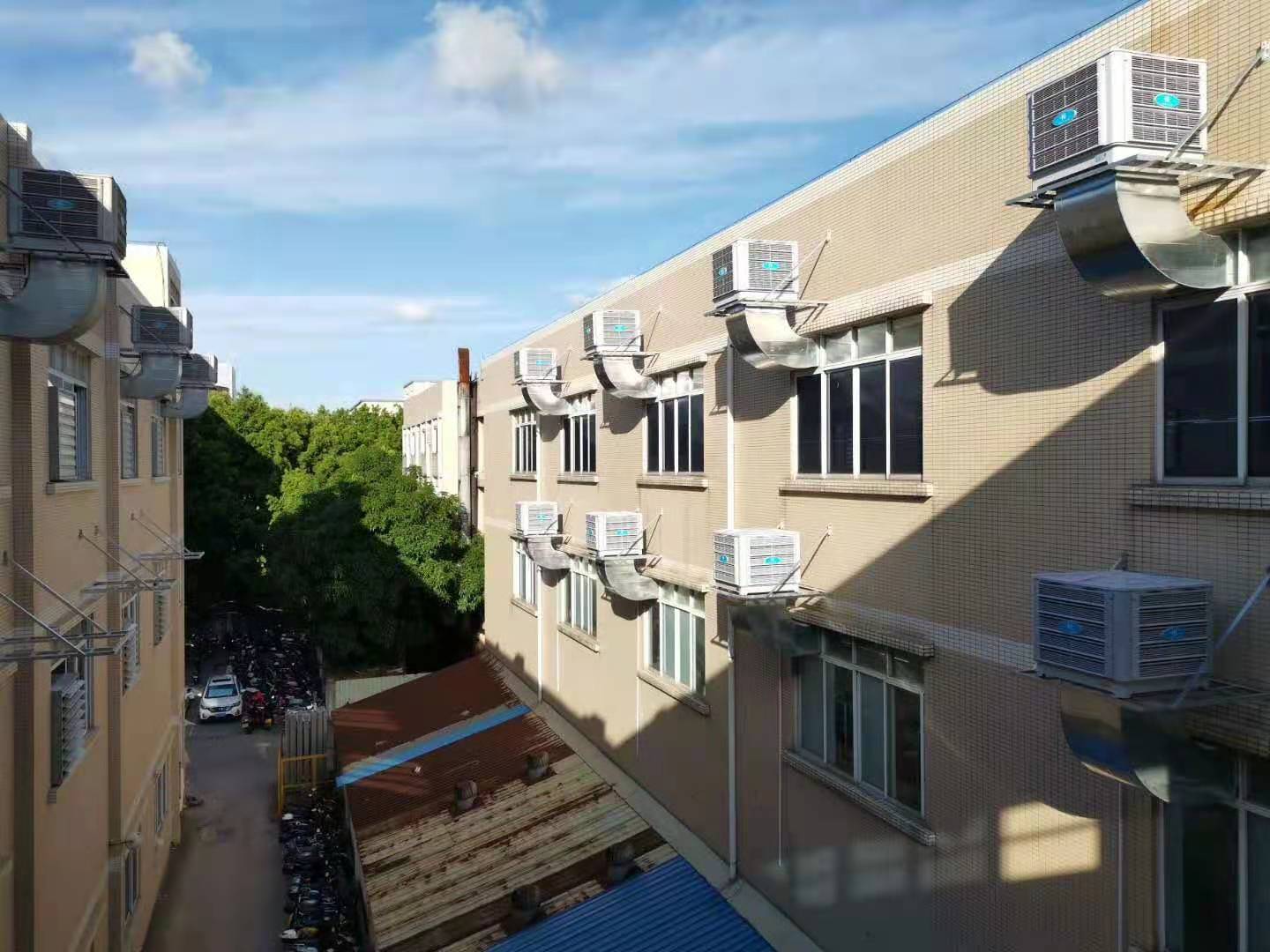 為了提高車間的工作環境,對車間進行通風降溫系統改造 ,工業冷風機為模具生產車間舒適降溫通風,主機安裝在模具車間室外不僅僅可以將外部空氣經過濕簾水蒸發變成新鮮冷風與室內空氣形成對流,達到通風、降溫、換氣、除味的效果,而且可以把門窗打開,將室內的粉塵異味通過對流排出。除此之外,工業冷風機還可以對員工崗位進行局部送風,每臺平均可覆蓋面積100㎡,1小時僅需1度電。