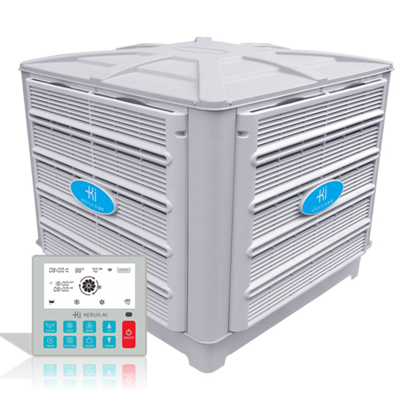 “科瑞萊”蒸發式冷氣機的核心降溫部件是“高效蒸發式濕簾”——純天然多層波紋植物纖維疊合物。根據“水蒸發吸收熱量,蒸發面積影響蒸發效率”這一自然物理現象,通過風機往室內送風,室外的新鮮空氣流經浸水的濕簾后空氣與水份充分接觸同時吸收空氣中的顯熱,從而達到降溫、換氣、除塵、增加室內空氣含氧量的目的,特別適用于高溫車間及人群密集的工作場所。